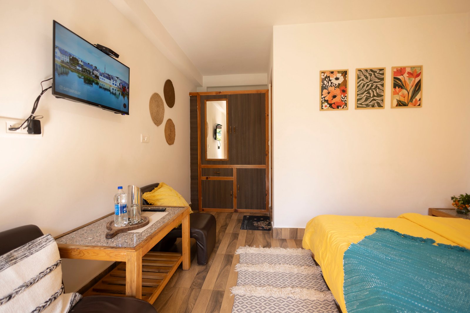 Each room is equipped with all the modern essentials you need: a TV, coffee table, cushioned chairs, wardrobe, side tables, and a spacious washroom. Whether you’re a solo traveller, a remote worker, or planning an extended mountain stay, Budget Pads offer a calm, budget-friendly space to relax, focus, and soak in the peaceful rhythm of mountain life all while staying connected to Yaarana’s warm and welcoming atmosphere.