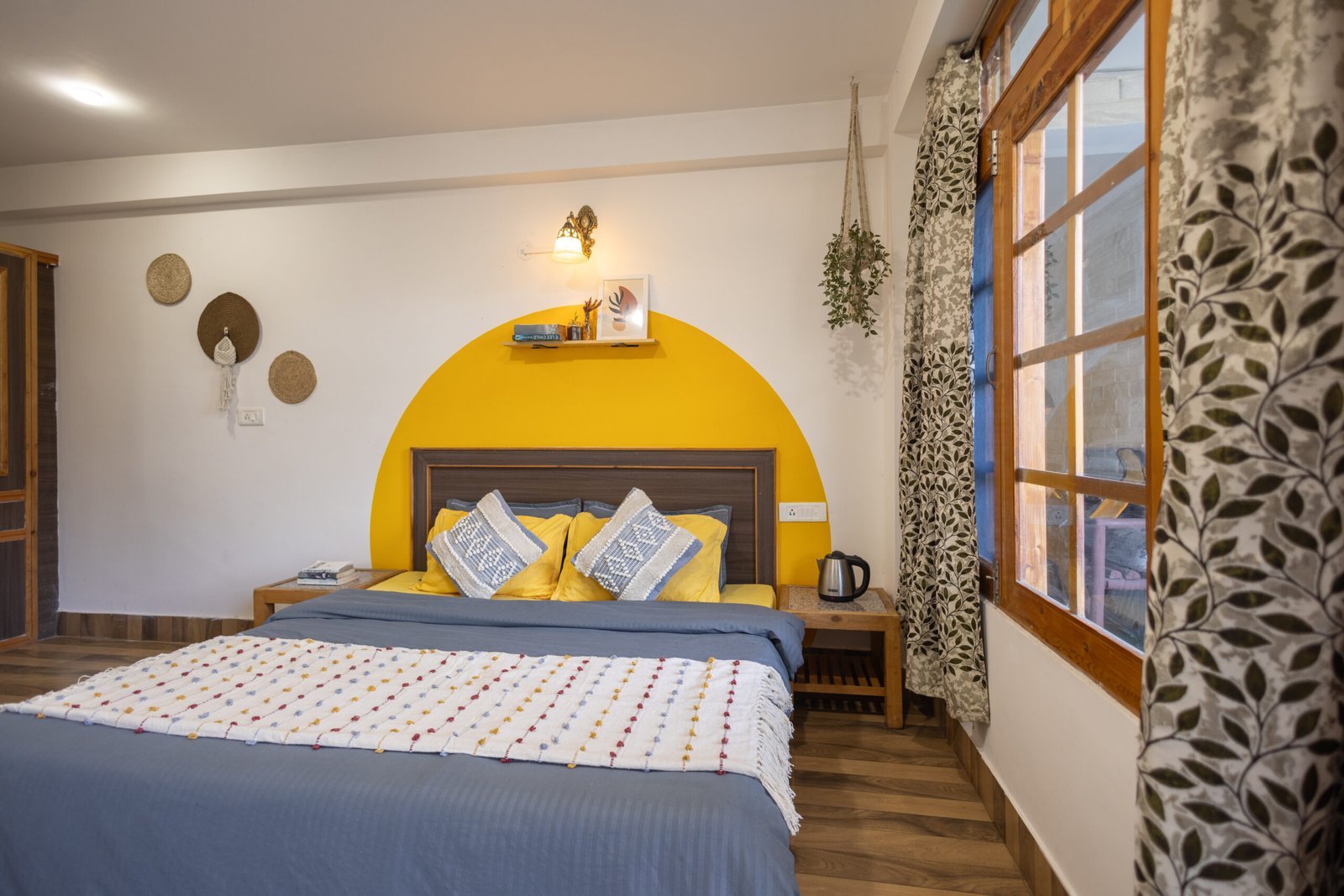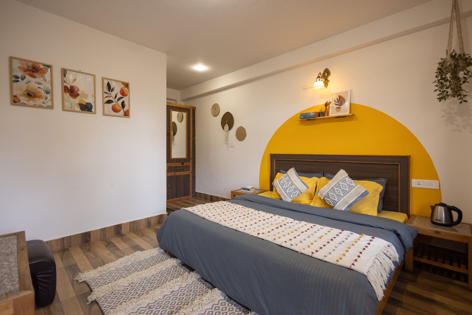 Situated on the first floor between the garden and our scenic rooftop café, this cosy premium room strikes the perfect balance between privacy and connection. Thoughtfully designed for comfort and ease, it features a TV, coffee table, cushioned chairs, wardrobe, side tables, and a spacious washroom. It’s a peaceful and budget-friendly space to focus, relax, and soak in the essence of mountain living.