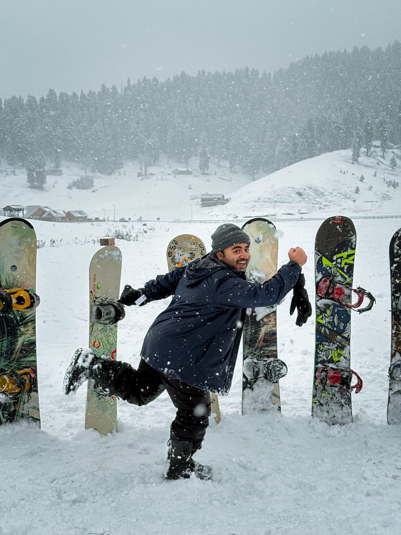 Experience the thrill of snowboarding in the breathtaking landscapes of Gulmarg