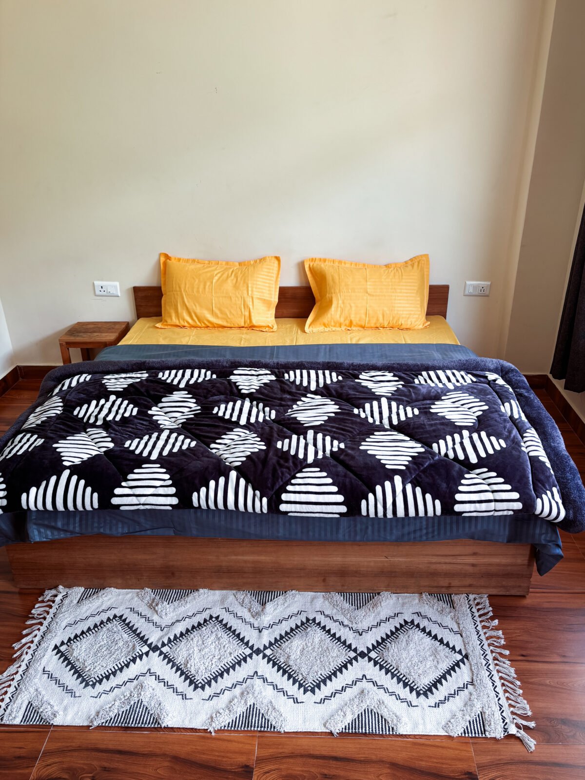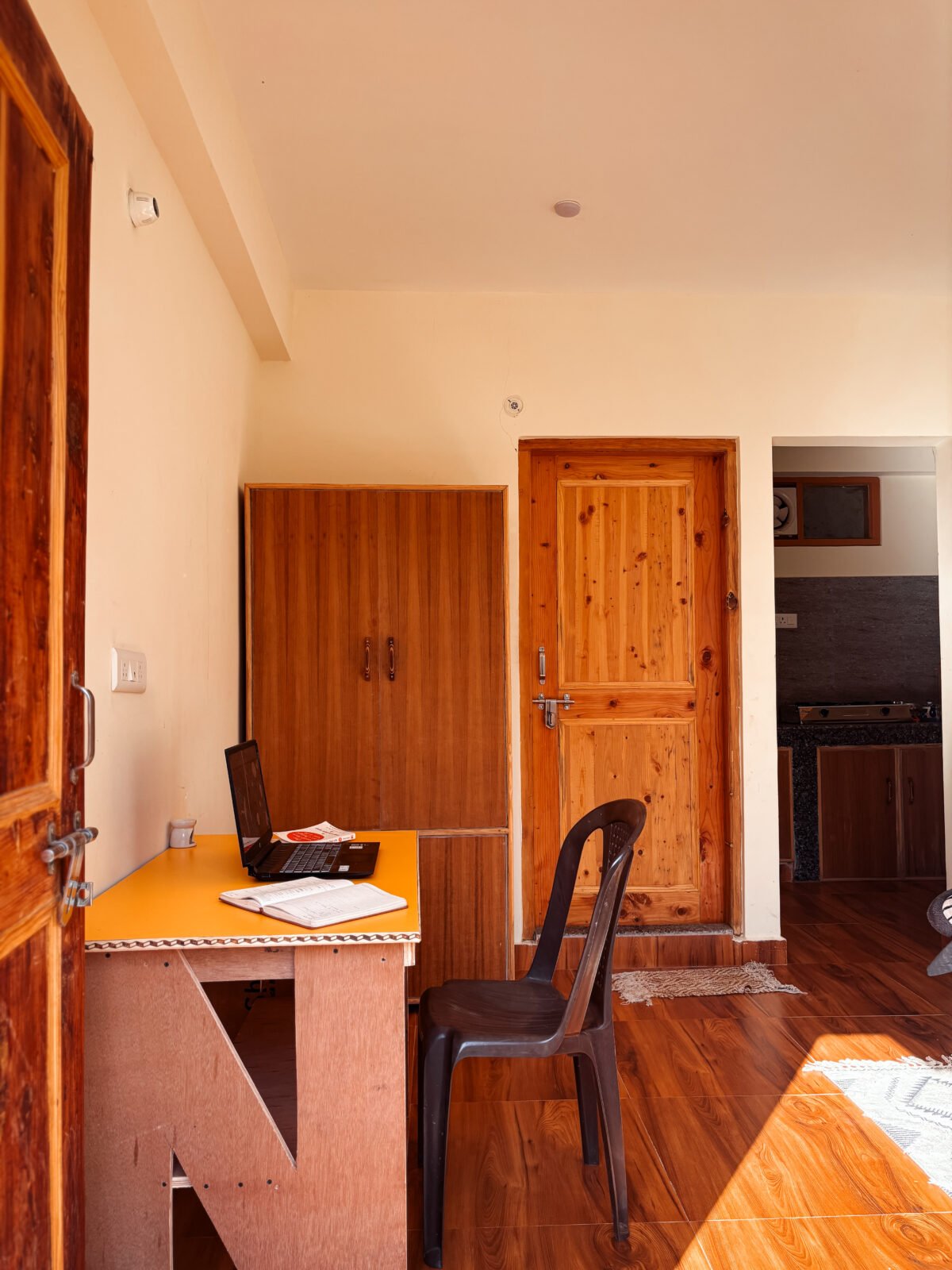 A cozy one-bedroom stay in the peaceful village of Vashisht, Manali – surrounded by stunning mountain views and calm vibes. With a comfy bed, a fully equipped kitchen, and a home-like feel, it’s perfect for relaxing, working, or just slowing down in nature.