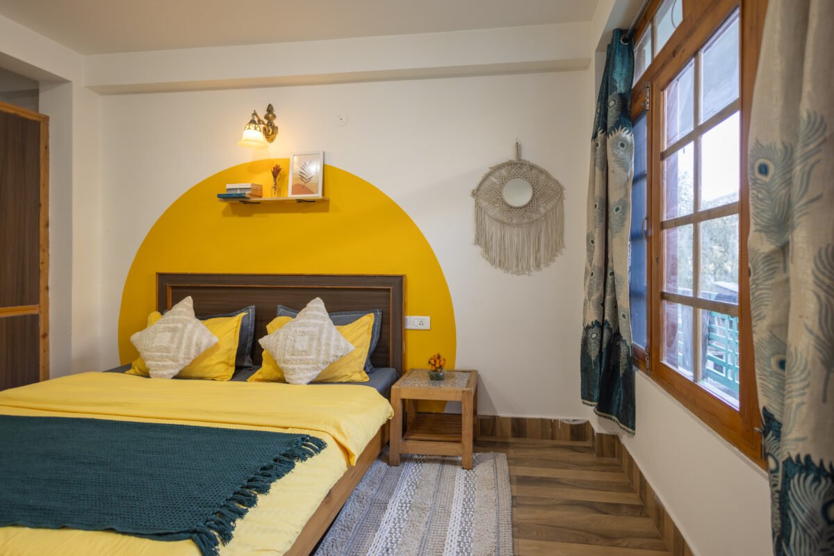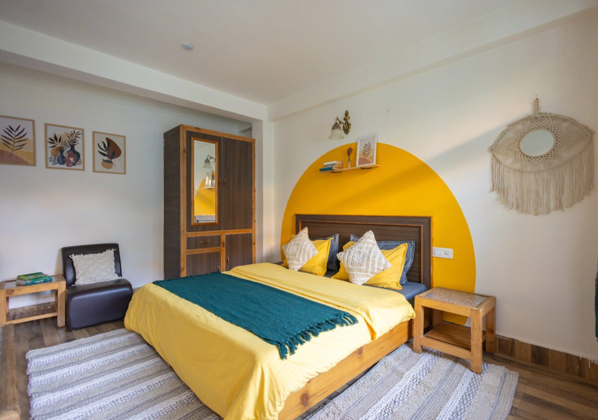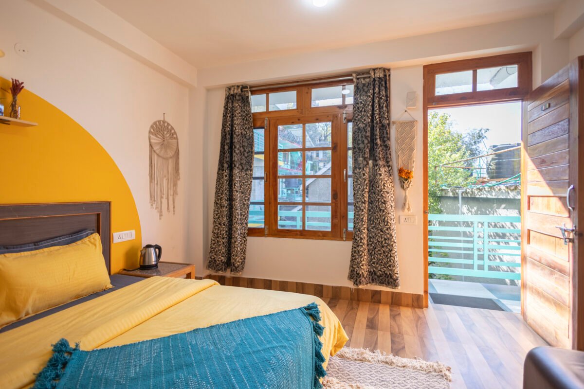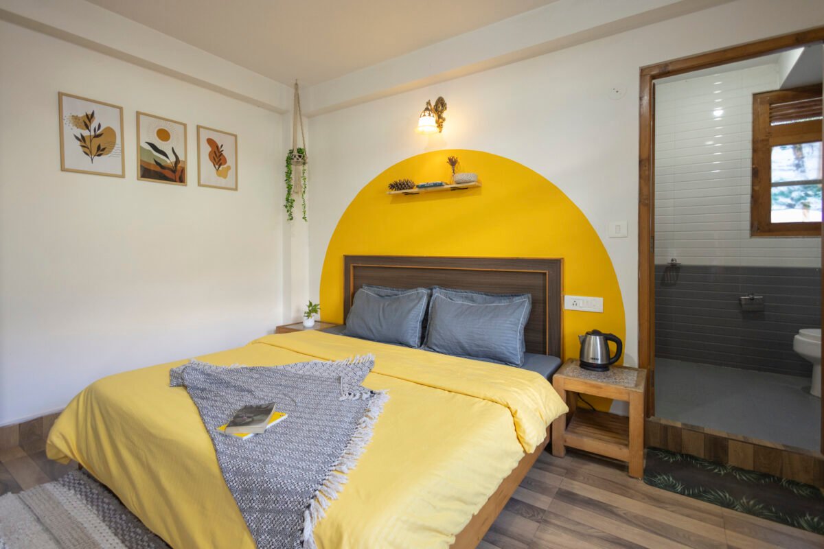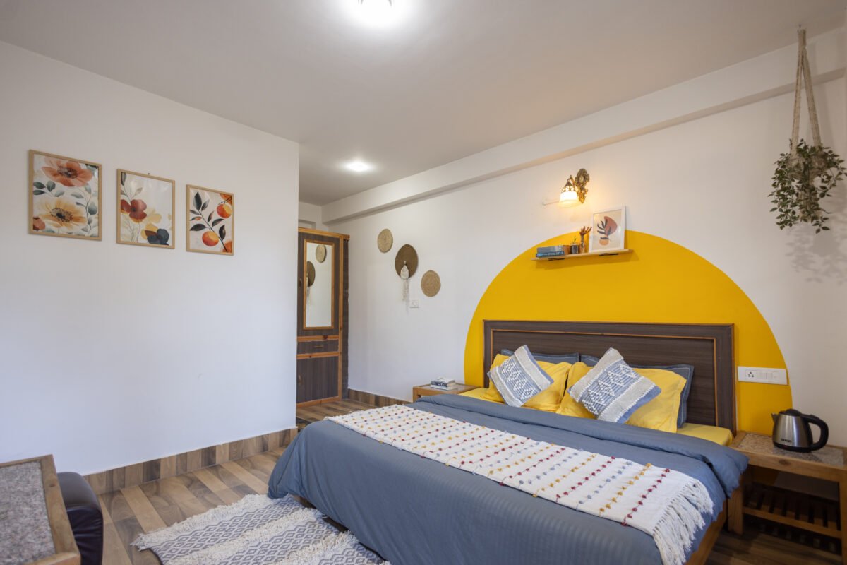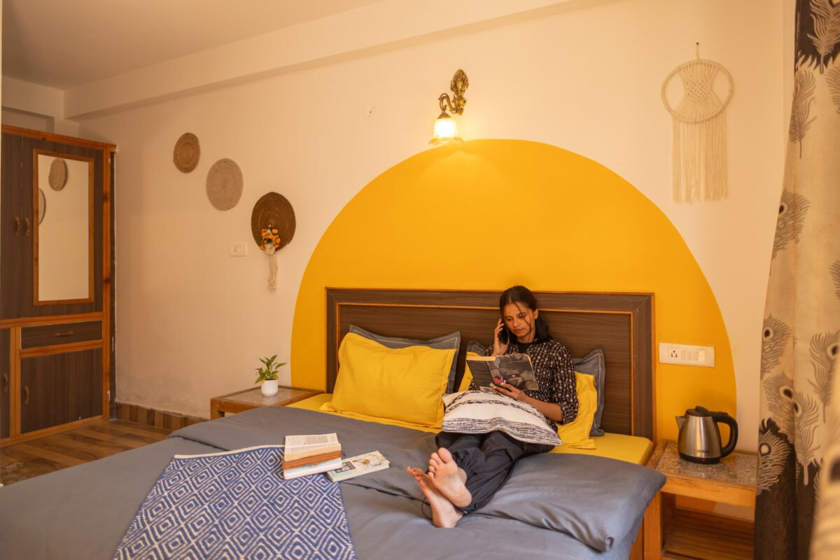 Situated on the first floor between the garden and our scenic rooftop café, this cosy premium room strikes the perfect balance between privacy and connection. Thoughtfully designed for comfort and ease, it features a TV, coffee table, cushioned chairs, wardrobe, side tables, and a spacious washroom. It’s a peaceful and budget-friendly space to focus, relax, and soak in the essence of mountain living.