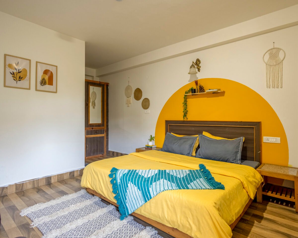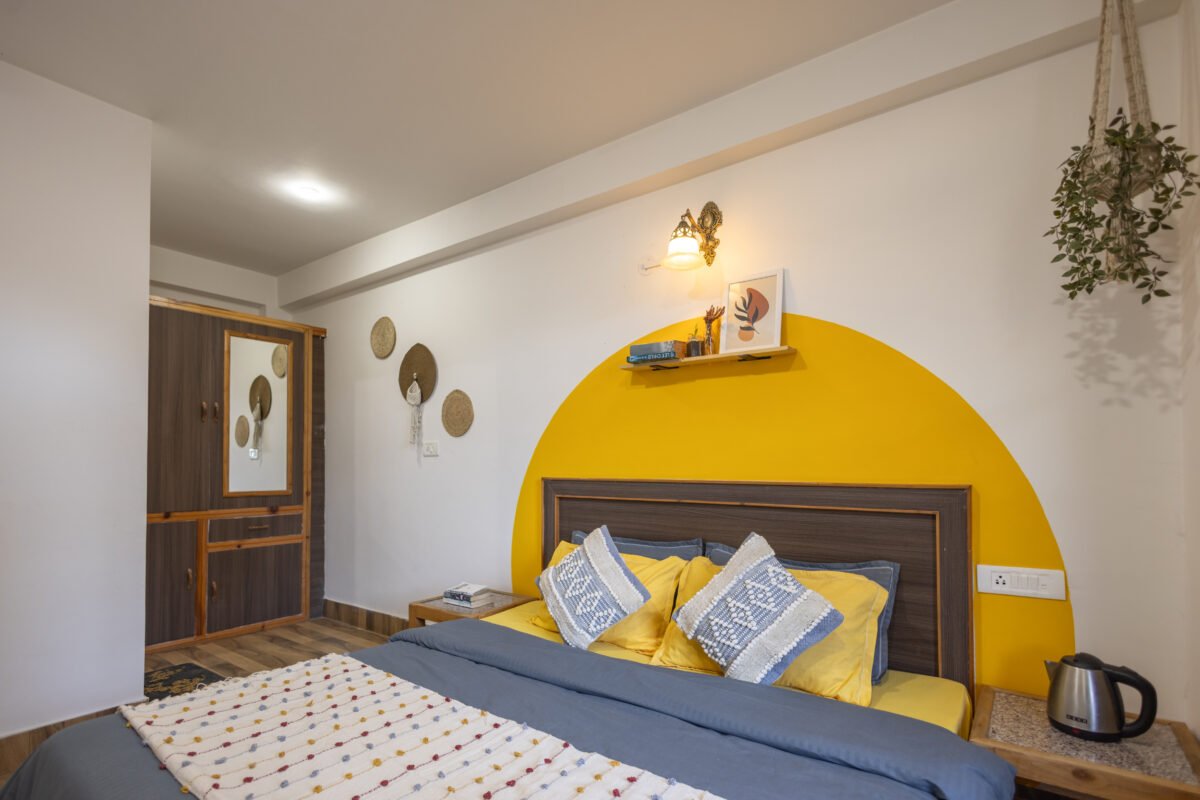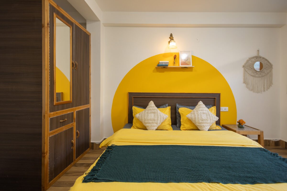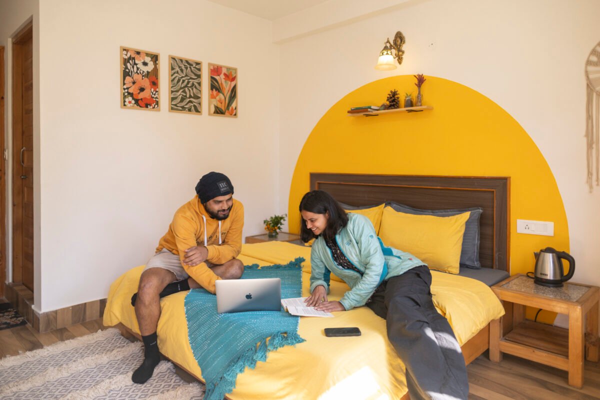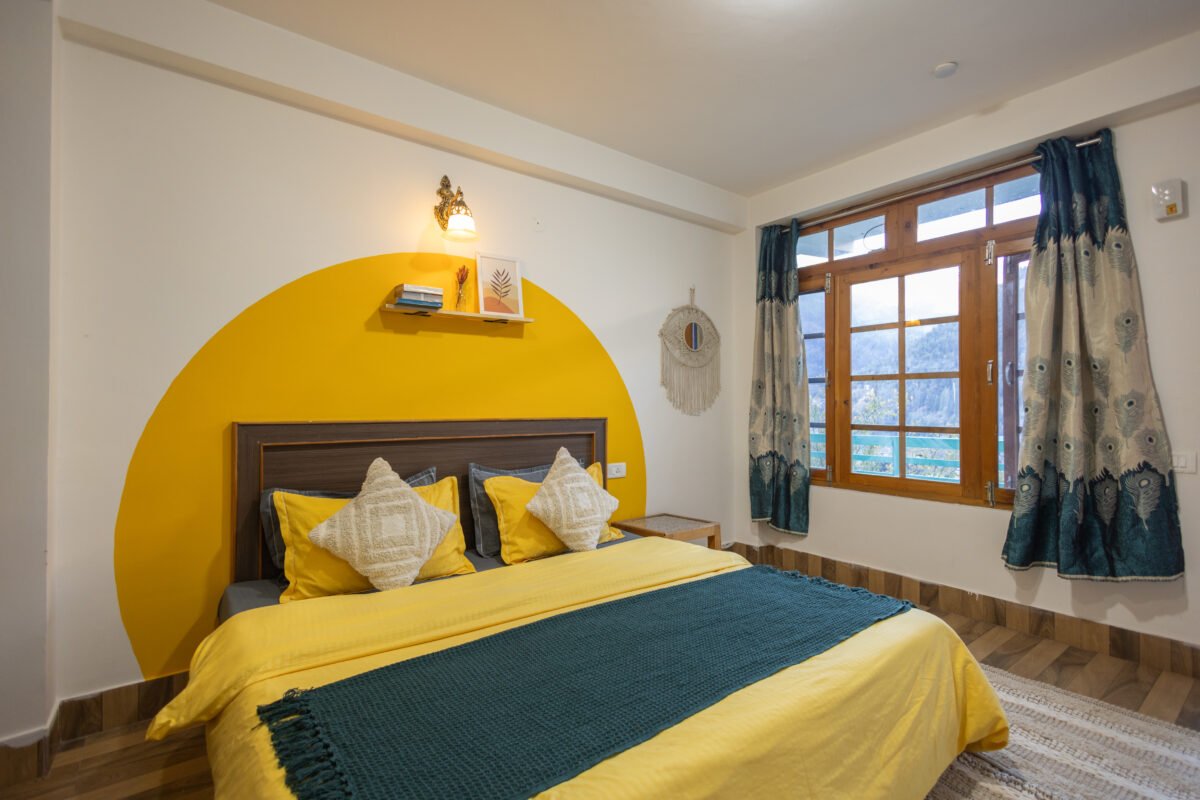 Situated on the first floor between the garden and our scenic rooftop café, this cosy premium room strikes the perfect balance between privacy and connection. Thoughtfully designed for comfort and ease, it features a TV, coffee table, cushioned chairs, wardrobe, side tables, and a spacious washroom. It’s a peaceful and budget-friendly space to focus, relax, and soak in the essence of mountain living.